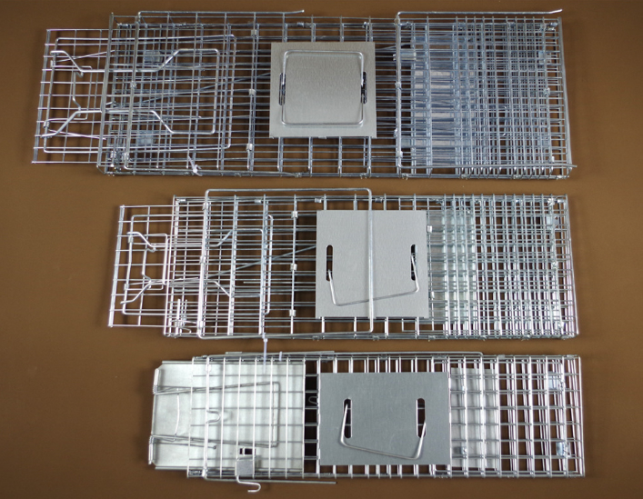 Trap is a catch and release style, catering to different trapping needs such as pest control or wildlife management. Whether you're dealing with nuisance animals on your property or preparing for outdoor adventures, Trap offers a humanely but dependable and efficient solution. Spring-loaded door securely and safely captures animals and travels easy to relocate. Made of powder coated tough metal.